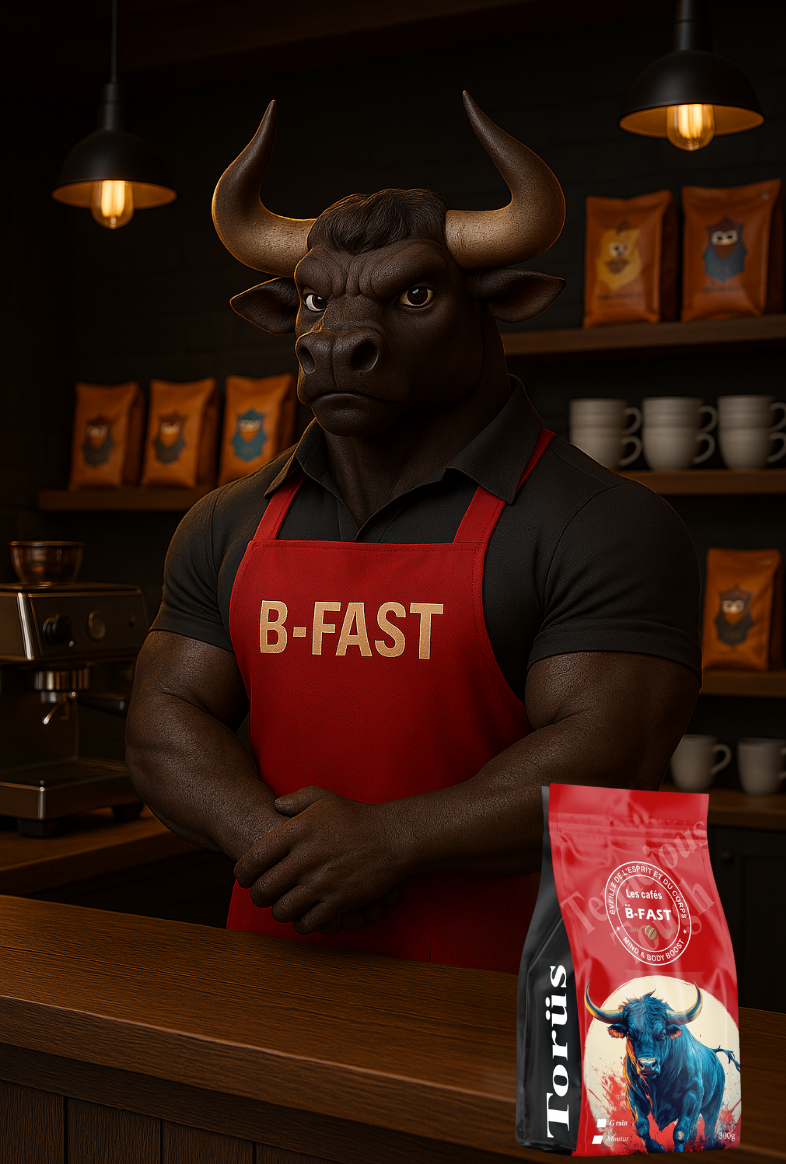 Torüs est le pilier de l'équipe. Fort et déterminé, il assure le bon fonctionnement du bistro avec une ténacité inébranlable. Tel un taureau défendant son territoire avec assurance, il coordonne chaque membre de l'équipe, veillant à un rythme soutenu et à une fluidité parfaite. Il incarne la force tranquille qui transforme l'énergie de l'équipe en une expérience harmonieuse et inoubliable pour chaque client.