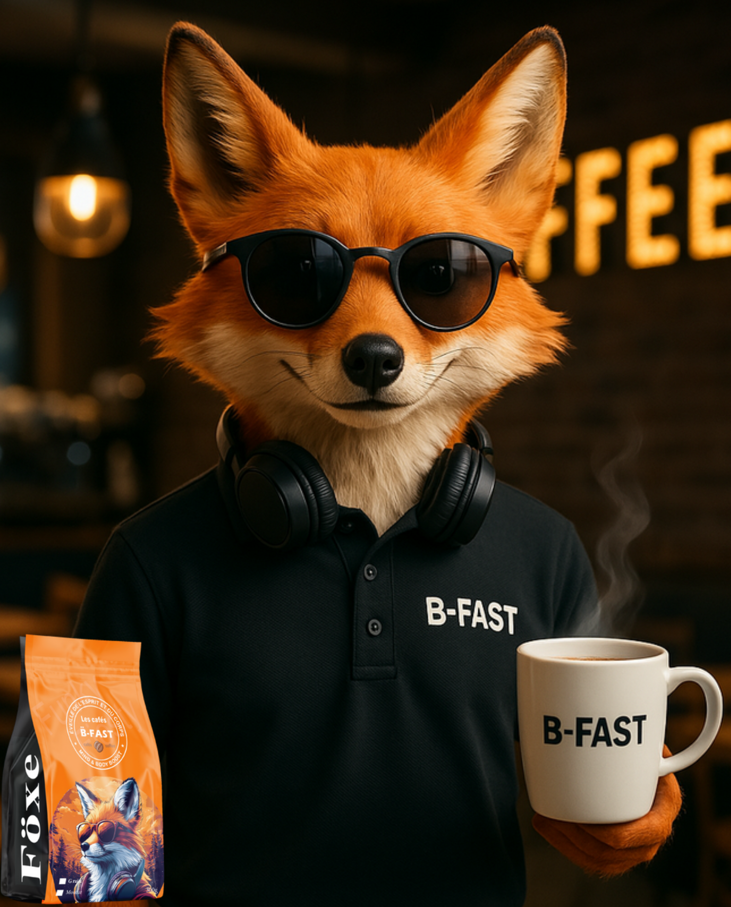 Le Föxe est le charmeur de l'équipe. Toujours rapide et attentif, il incarne l'art du service client avec élégance et une pointe d'humour. Professionnel et courtois, il se comporte comme un véritable sommelier du café. Le Renard fait bien plus que servir : il crée une expérience sur mesure où le café est dégusté avec le même raffinement qu'un grand vin.